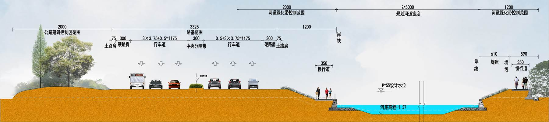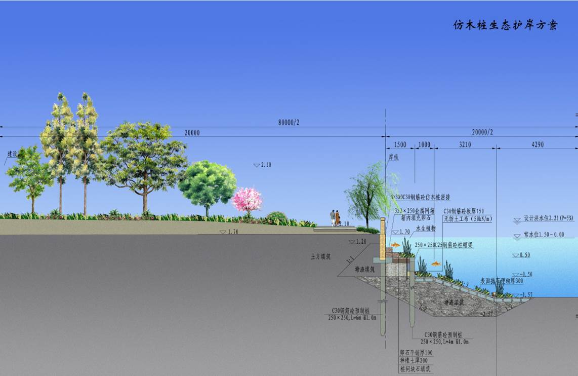 工程位于海曙區(qū)西側(cè),南起鄞江,北至姚江,為實(shí)現(xiàn)對(duì)海曙西側(cè)山區(qū)洪水的攔截,共整治河道長(zhǎng)24km,建設(shè)閘站40座,閘門總凈寬554m,泵站22m3/s,改建新建橋梁42座。其中有3.5km與G228國(guó)道并線,為協(xié)調(diào)國(guó)道與河道之間用地布局,通過(guò)優(yōu)化河道斷面型式和堤線線位,實(shí)現(xiàn)了對(duì)土地的集約利用,打造一條海曙西部交通和河道的靚麗風(fēng)景線。