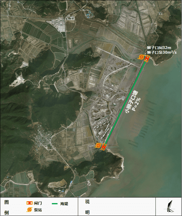 松岙鎮(zhèn)小獅子口區(qū)塊位于松岙鎮(zhèn)最東端,坐北朝南面海依山。本次小獅子口海塘安瀾工程主要包括拆除老閘新建獅子閘站和1.893公里海塘提標(biāo)加固工程。其中,閘站工程包括泵站設(shè)計(jì)流量為30m3/s,水閘規(guī)模為6孔×5.5m,凈寬33m;海塘工程包括小獅子口塘提標(biāo)加固至50年一遇標(biāo)準(zhǔn)。