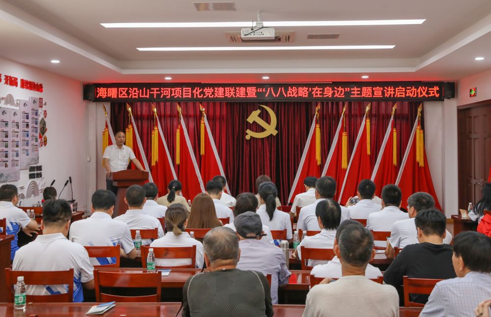 近日,海曙區(qū)直機關(guān)工委和區(qū)水利局以“五最黨建”為引領(lǐng),在集士港鎮(zhèn)岳童村文化禮堂舉行沿山干河項目化黨建聯(lián)建暨“‘八八戰(zhàn)略’在身邊”主題宣講啟動儀式,我院作為沿山干河項目參建單位、活動的承辦方參與了啟動儀式。我院黨總支書記、副院長王洪霞,工程設(shè)計項目組及青年黨員代表十余人參加了上述活動。